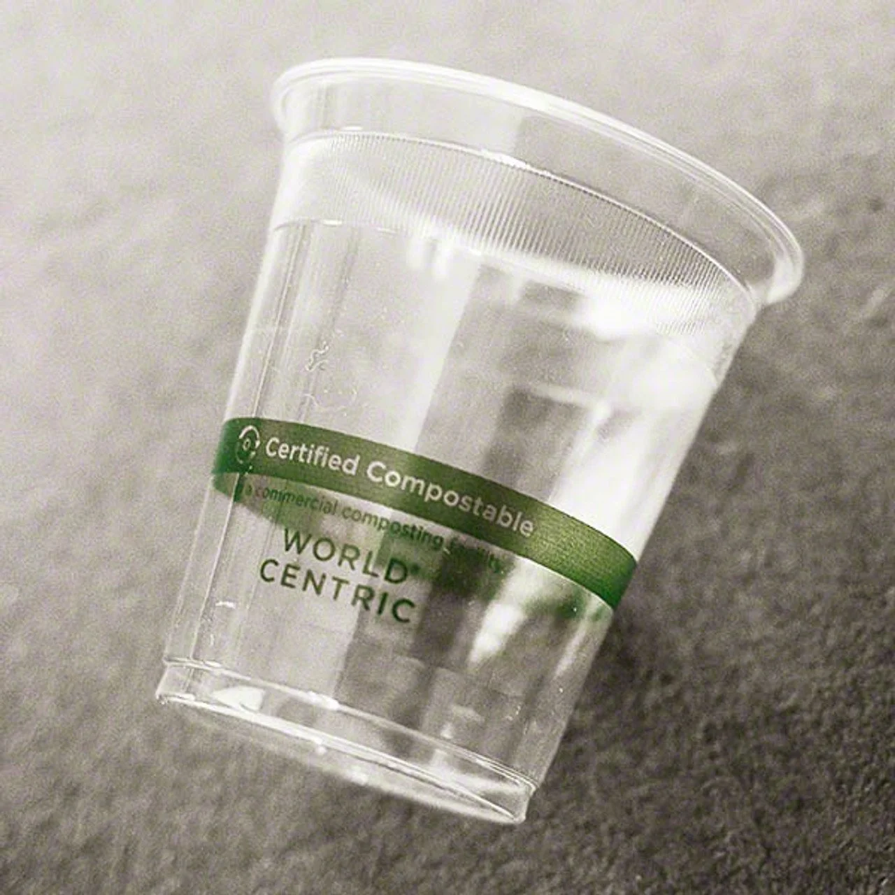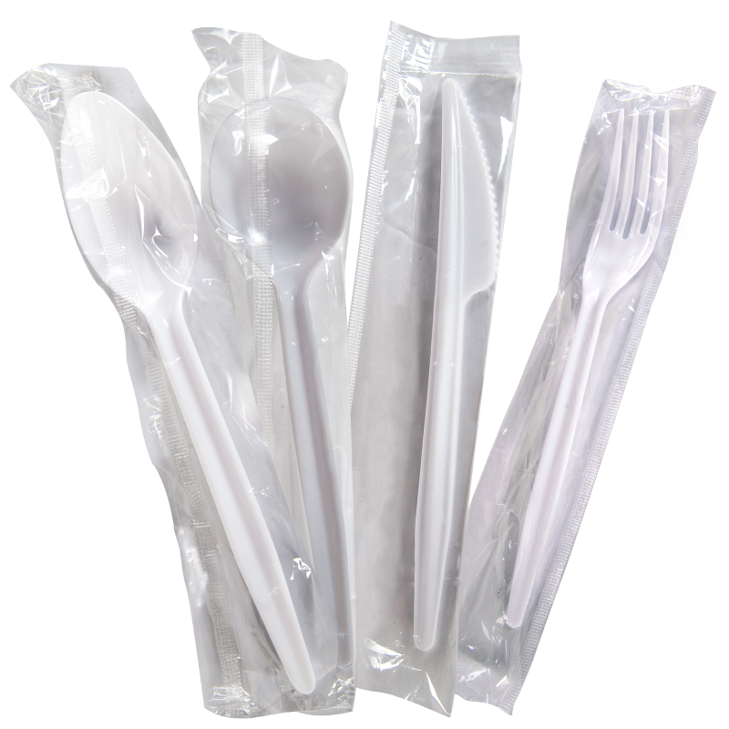 Plastic shopping bags, wrapped utensils, and coffee cups with lids, etc.Result